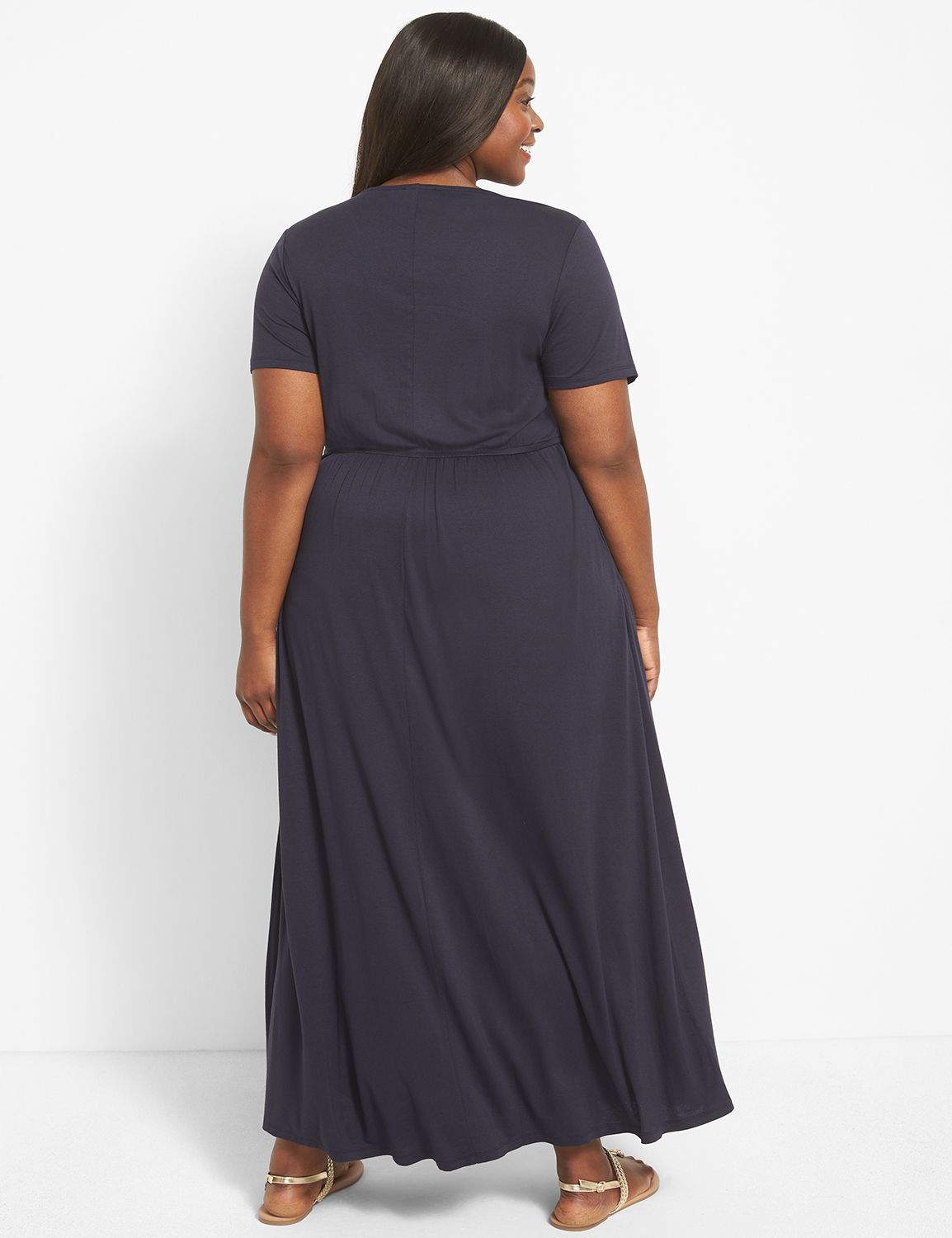 Short Sleeve V Neck Knot Maxi Dress Lanebryant